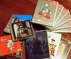 「DVDは永久的に保存可能なんですよ。」最近よく聞くセリフ。でもオラ知ってんだ。DVDをはじめ、CDもMOも光ディスクはすべて寿命が10年〜20年と決まってるってことを。よくもまぁ、そんな無責任なことを公言するなしかし。TVでも見たけど、光ディスクは盤面に接着されている保護膜は最適な環境の中でも20年経つと、剥がれて浮いてきてしまうと言ってた。もう2001年宇宙の旅を目前にした21世紀なのに、まだそんなヤワなもんしか作れないのか人類は。それを言い出すと、傘と布団。人類創世記から、ずーっとそのスタイルは変わってないがな。傘はデカイ葉っぱを傘にした古代人から、ボタン一つでバッと開くジャンボ傘や芯が折り畳める折り畳み傘。素材は違っても、使用法はいっしょや〜ん。布団も動物の皮や草類を布団にしてた古代人から、羽毛を詰めた現代の布団。でも使用法はいっしょや〜ん。もっとこう、人間のまわりだけ雨がよけてくれるような電波とか。ダメダメ、電波は身体に悪い。オーラ・・・とか?
